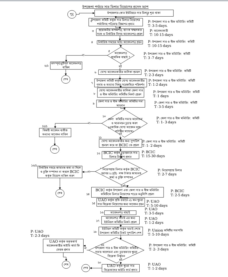 উপজেলা সার ডিলার নিয়োগের প্রসেস ম্যাপ